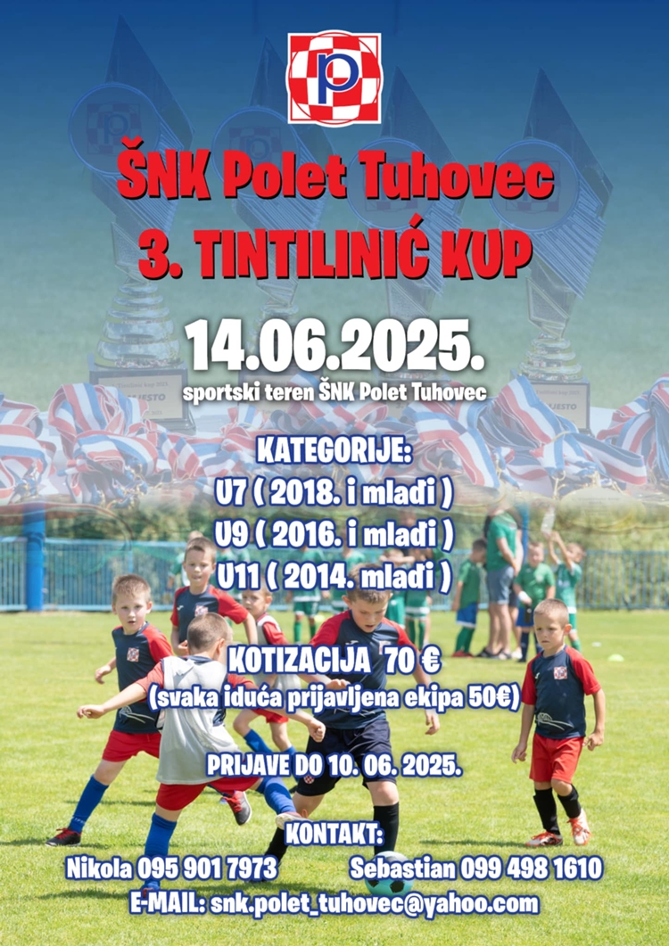 Na sportskom terenu ŠNK Polet Tuhovec, 14. lipnja 2025. godine održat će se treće izdanje Tintilinić Kupa – nogometnog turnira za najmlađe kategorije, koji iz godine u godinu okuplja sve veći broj sudionika i gledatelja.